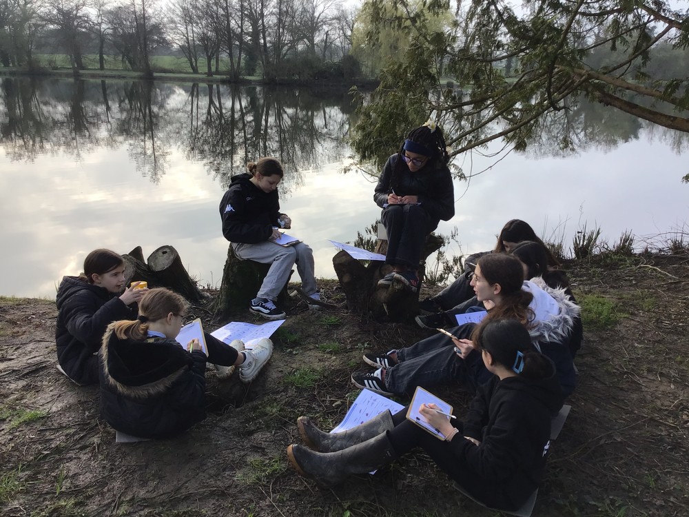 Les élèves de 6e sur le cours de SVT ont participé à une sortie pédagogique pour explorer la biodiversité autour de l’étang de Mauron, encadrée par l’association Passeur de Nature.